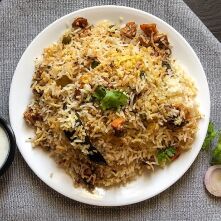 Goat cooked w/ basmati rice over a low fire w/ herbs & spices